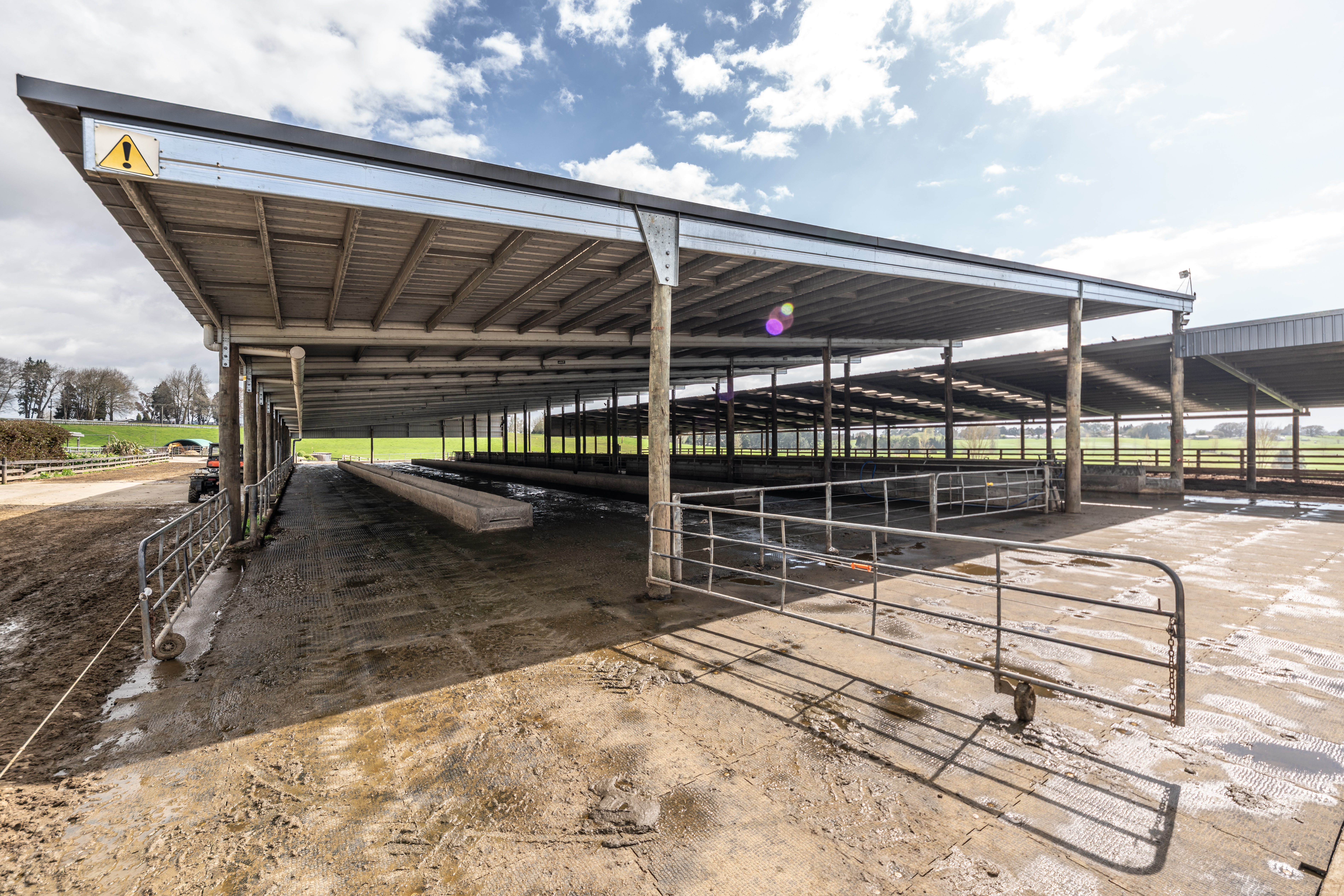 Built with durable timber poles and a Futura Box-Beam steel roof structure, this shed was designed to manage effluent run-off effectively while creating a comfortable, sheltered feeding area for cows. The result? Reduced feed wastage and a facility that truly works for both animals and farmers.